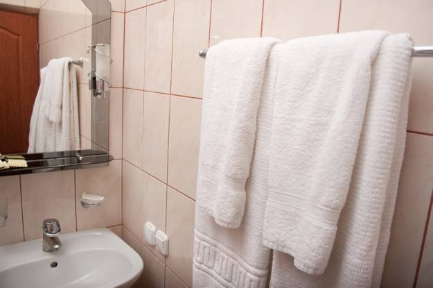 8. Clean bathroom rug, bath mat, and towels.