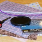 - Trace a square shape overlapping a circle onto a piece of cardboard and cut it out for a template. Trace this pattern onto a piece of decorative scrap booking paper and cut it out.