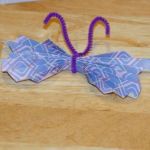 - Tie your pipe cleaner around the center of the folded paper leaving two ends sticking up for antennae.