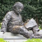 Three quotations from Einstein are engraved on the bench where the figure is seated: