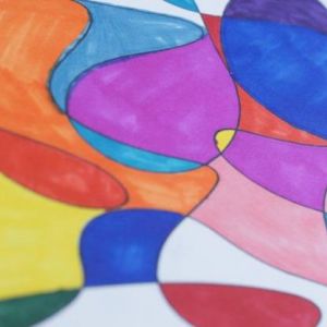 Create abstract art from a unique freehand squiggle that you draw on a piece of paper and color them in with vibrant and distinctive colors. When you overlap your squiggling line all over a piece of paper and