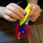 Create a Button Snake out of felt, a button and some ribbon. Young children will enjoy this quiet time activity which teaches the skill of buttoning as well as enhancing fine motor skills. Bring this activity