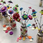 Kids of all ages can create a beautiful bouquet of flowers to brighten a room up at any time of year with these beautiful button flowers. The button flowers are very easy to make and is a great activity to help practice hand eye coordination. Artists will have so much fun coordinating their unique color schemes and building their very own flowers. Make one or several to create a bouquet for a gift or a pretty accent for anywhere in your family's home.