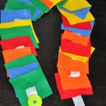 Bring this activity along to waiting rooms or restaurants or use them in the car to keep young minds and hands active and engaged. Button snakes can be used anytime. We used different shapes and colors of felt for our button snakes so that our littlest ones could practice colors, shapes, counting and buttoning technique all in one!