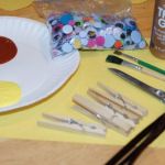 3. Thoroughly paint the 3 clothespins with yellow paint and allow to dry.