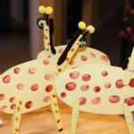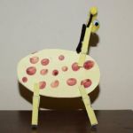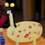 7. Assemble your giraffe by clipping the two clothespin legs to the bottom of the oval while holding the oval on its side. You will actually be able to stand it up.