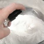 - Use a spray bottle of water to spritz the mixture lightly. It will fizz a bit. You don't want to wet it too much. Just enough to squeeze into a moldable mixture. Note: if scents or color is desired put it into the spray bottle before you spray the dry mixture.