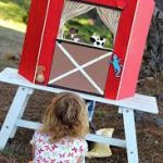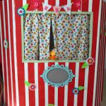 4. Decorate the board: You can use painter's tape to paint stripes on the puppet theater, let the kids decorate it, Use Felt and buttons to create flowers, chalkboard paint to create a sign, ribbon or rick rack to outline the window frame. The possibilities are endless.