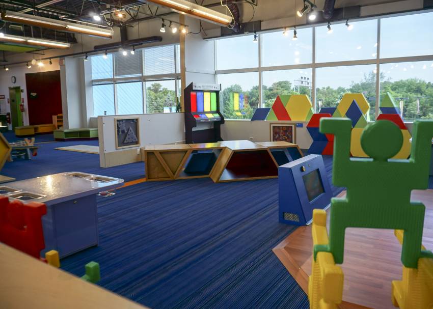 - The museum offers over 20,000 square foot of exhibits. This space is divided into eight "neighborhoods" each set around a seperate learning theme. Each neighborhood allows children to interact fully with the exhibits with the aim of learning through play and problem solving activities.