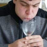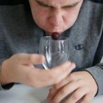 4. When they tell you that it is impossible, simply put your mouth above the glass and blow hard down into the glass and the grape will pop right up and out of the glass. Be ready to catch it.