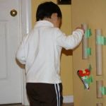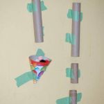 1. Simply tape some paper tubes vertically onto a small section of wall space with your painter's tape. Tape two together for longer tubes or use toilet paper tubes and paper towel tubes for shorter ones. Tape them to the wall so that the tops are within in your toddler's reach.