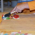 - Using your foam brush, apply a thin layer of Mod Podge starting in one corner and moving across the colored side of the cardboard.