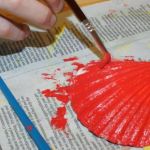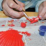 1. Paint the top of the shells red and allow to dry thoroughly