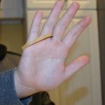 - Place a rubber band over your first and second fingers while keeping your hand open.