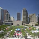 Columbus Commons is one of the city's newer parks and green spaces. This area was once the Columbus City Center Mall. After 20 years of operation, the mall closed in 2009. Columbus Commons was completed two years